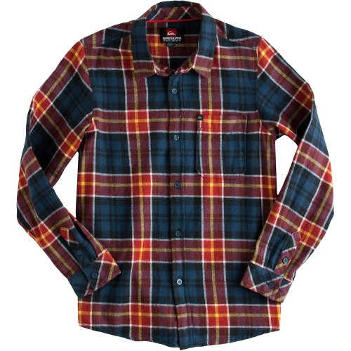 Quiksilver boys operator long sleeve 100% cotton regular fit plaid flannel woven with left chest pocket. Washed for softness